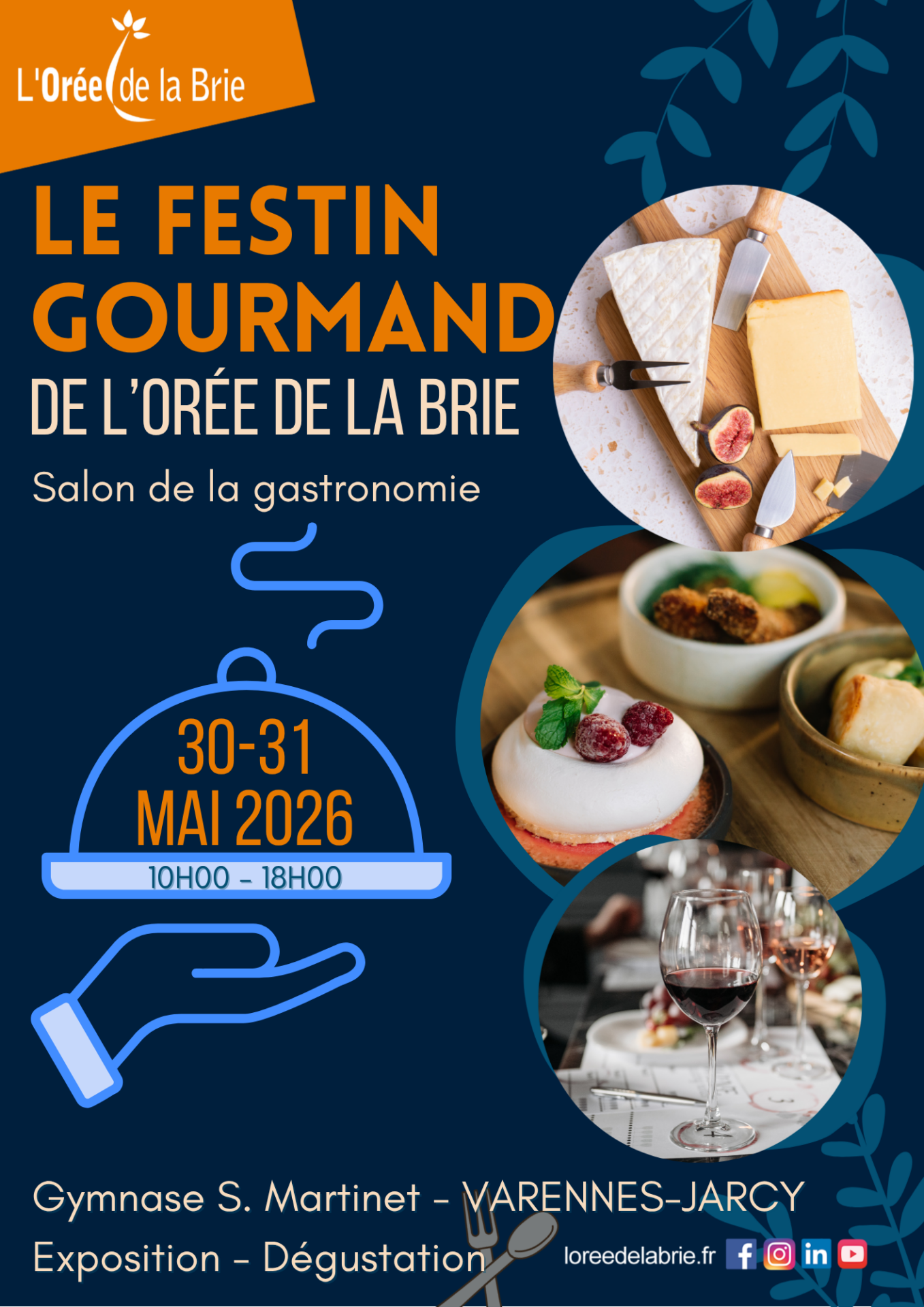 La Communauté de communes de l’Orée de la Brie organise une nouvelle édition de son salon de la gastronomie “Le Festin Gourmand”. Il aura lieu au Gymnase Sandrine Martinet – Chemin des Aufrais à Varennes-Jarcy, les 30 et 31 mai 2026, de 10h00 à 18h00, sur les deux jours.Les visiteurs pourront profiter des stands proposant divers produits : fromages, charcuterie, terrines, confitures, huiles, épices, fruits secs, guimauves, biscuits, macarons, pâtes de fruits, cookies, chocolat, rhums, champagnes, vins, apéritifs, bières mais aussi de la belle coutellerie.