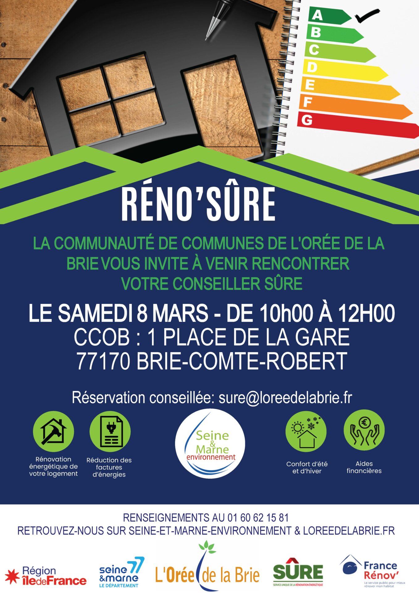 Venez poser toutes vos questions à l’occasion de la matinée « RÉNO’SURE » organisée par la Communauté de communes de l’Orée de la Brie en partenariat avec l’association Seine-et-Marne Environnement le :