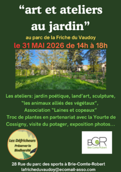 Ateliers et art au jardin à la Friche du Vaudoy le 31 mai de 14h00 à 18h00