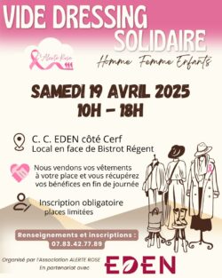 Le 19 avril, notre Vide-Dressing Solidaire revient au Centre Commercial EDEN à Servon !
