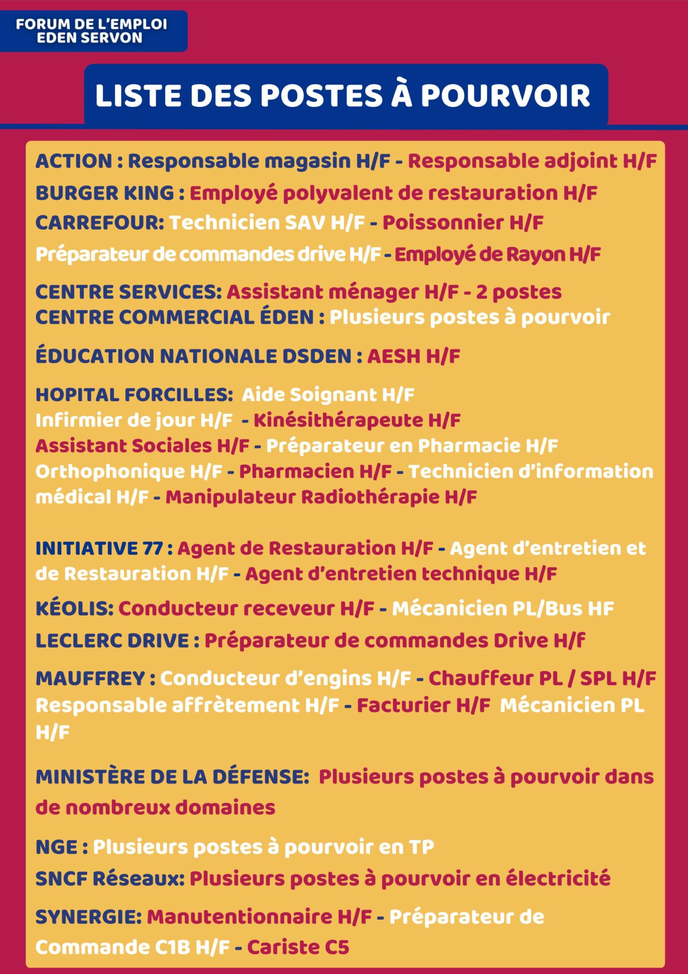 Seront proposés des CDI, des CDD, des emplois étudiants et des contrats d’été. Les candidats sont invités à se présenter le jour du forum munis de leur CV et de leur lettre de motivation.
