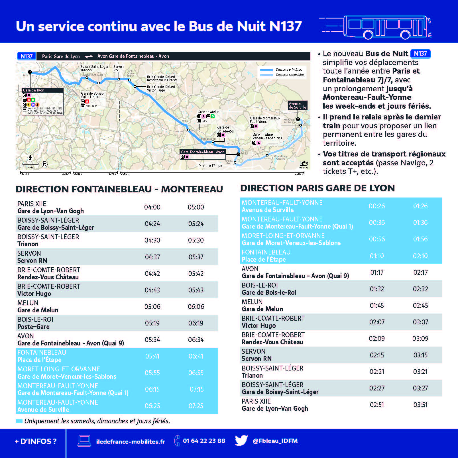 La ligne proposera 2 allers/retours, chaque nuit, entre Paris Gare de Lyon et Fontainebleau-Avon Gare.
