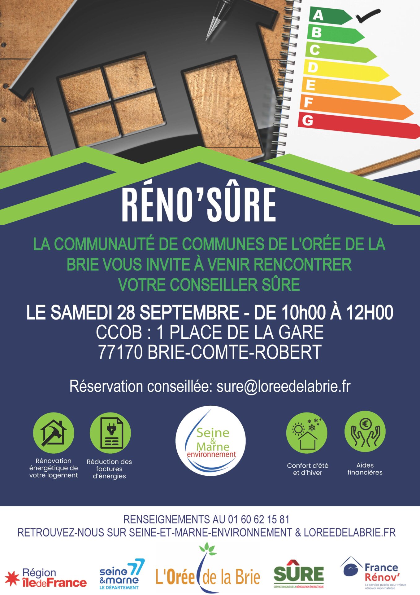 Venez poser toutes vos questions à l’occasion de la matinée « RÉNO’SURE » organisée par la Communauté de communes de l’Orée de la Brie en partenariat avec l’association Seine-et-Marne Environnement le :