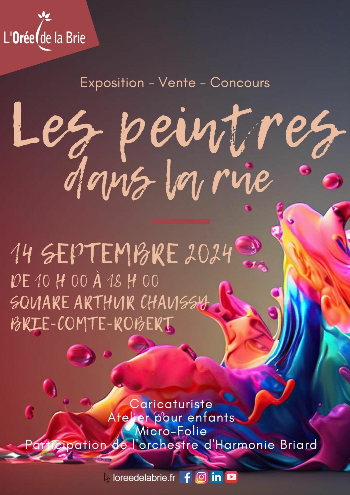 La Communauté de communes de l’Orée de la Brie organise une nouvelle édition de la manifestation « les Peintres dans la rue », le samedi 14 septembre 2024, square Arthur Chaussy à Brie-Comte-Robert.